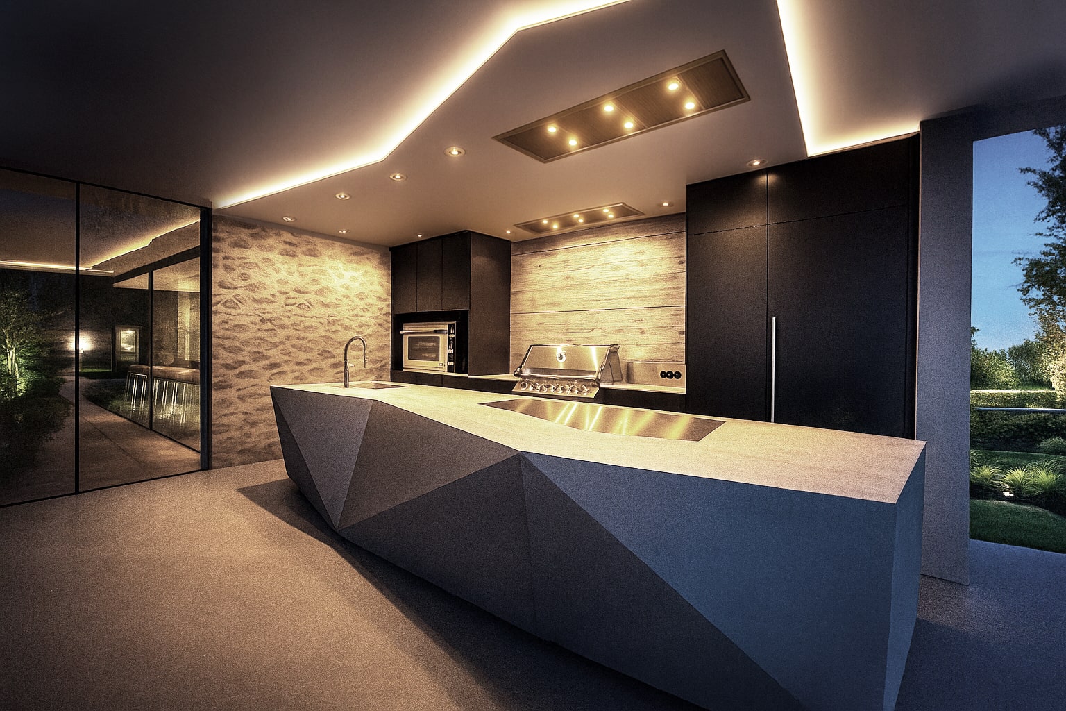 warm gewalzter Stahl, abstrakt gefaltet, geschweißt in handwerklicher Präzision! Wie von Zauberhand: Vom geschützten Innenraum im Winter, zum offenen Außenraum